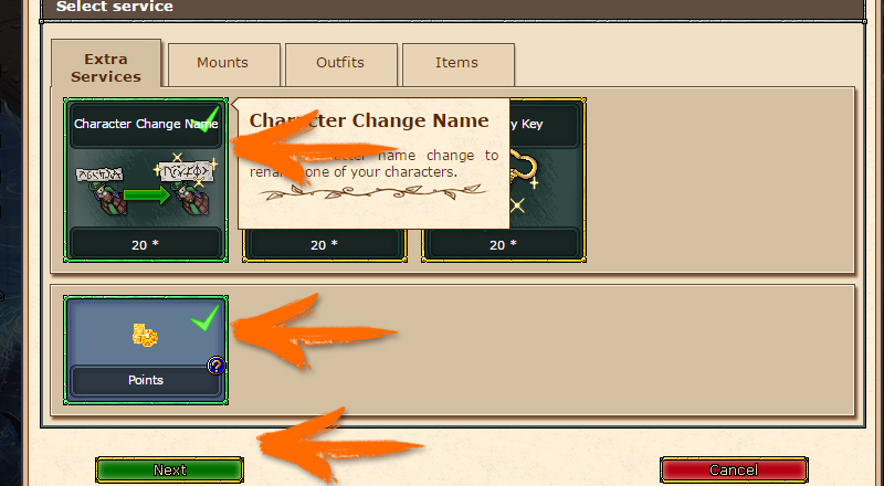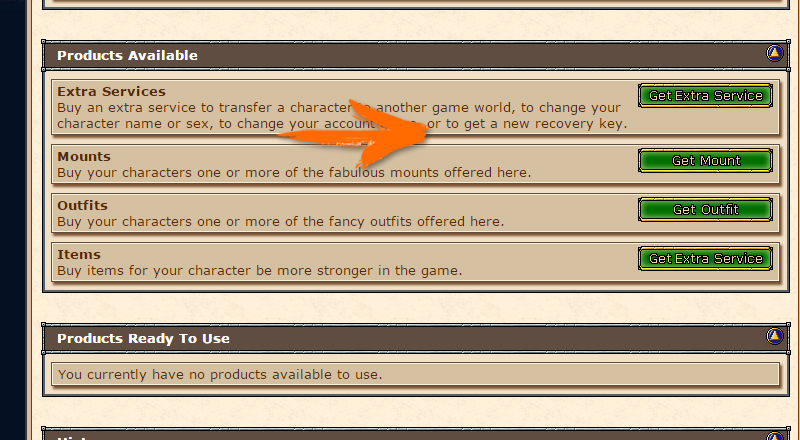- Account Name Change - Change the name of your account, the login you use to enter the game and the site.
